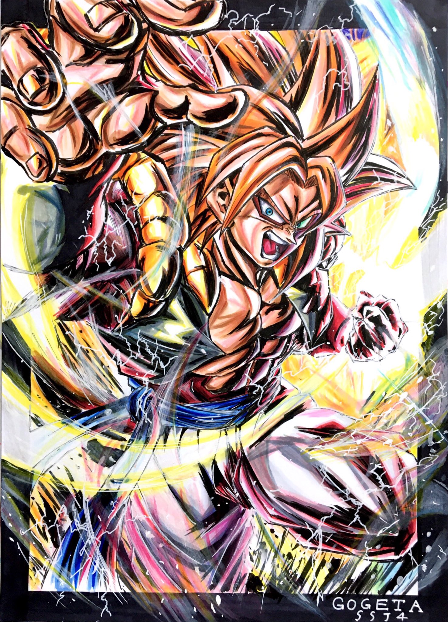 ムーマ Twitter પર ゴジータ完成 元絵のレジェンズゴジータを反転して超4にしてみました ドラゴンボール イラスト ゴジータ